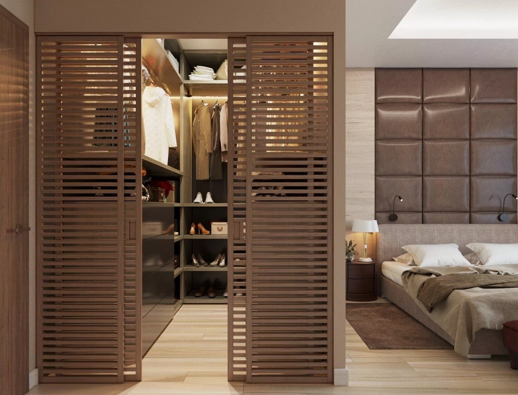 Один из самых востребованных вариантов — это двери-купе. Они подходят как для выделенных комнат, так и для гардеробных, встроенных в другие помещения.