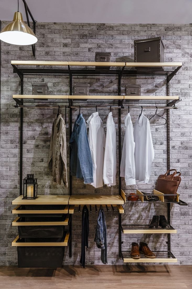 Сетчатые конструкции: Состоят из металлических корзин, полок и сеток из алюминия или хромированной стали. Обеспечивают хорошую вентиляцию вещей, предотвращая появление сырости. Эти системы мобильны и легко перестраиваются, однако отличаются высокой стоимостью.